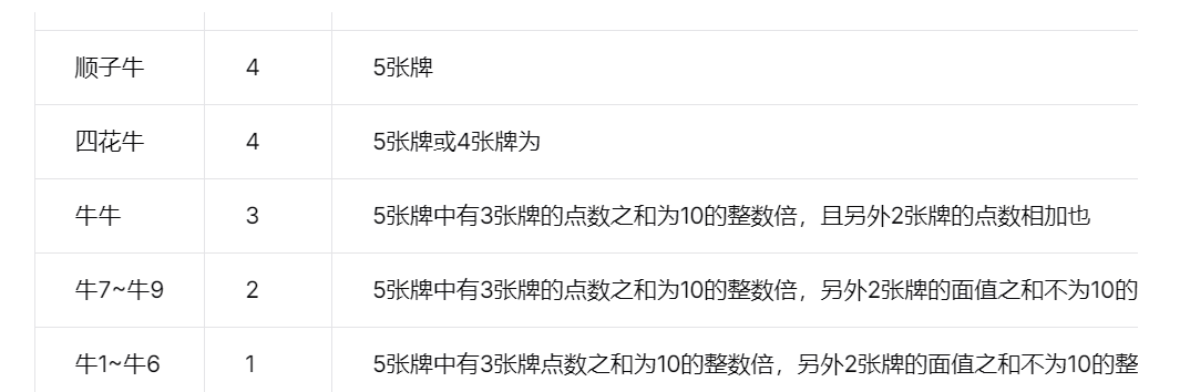 牌型倍数及说明: